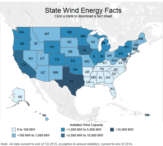 Breakdown of installed wind capacity by state. Notice anything weird about the Southeast? (x)