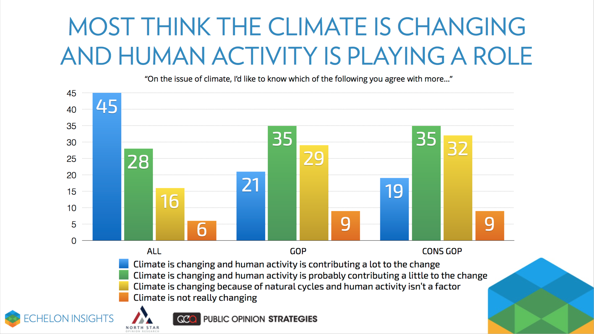 Let’s start off with a little game of good news, not-so-good news. First, some good news: a recent survey released by the nonprofit foundation ClearPath reveals that the majority (~56%) of Republican voters, and even many of those that identify as conservative Republicans (~54%), accept that the climate is changing and that human activity is contributing to this change. Surprised? I was too. Watching the last two primary debates and hearing the claims being made by many of the presidential candidates, it’s easy to forget sometimes that their mind-bogglingly silly assertions may not represent the majority of the voter base. Hence, the not-so-good news. That is, there are still a significant number of politicians that refuse to board the climate change train, and their stubbornness is preventing any sort of meaningful progress on this issue.