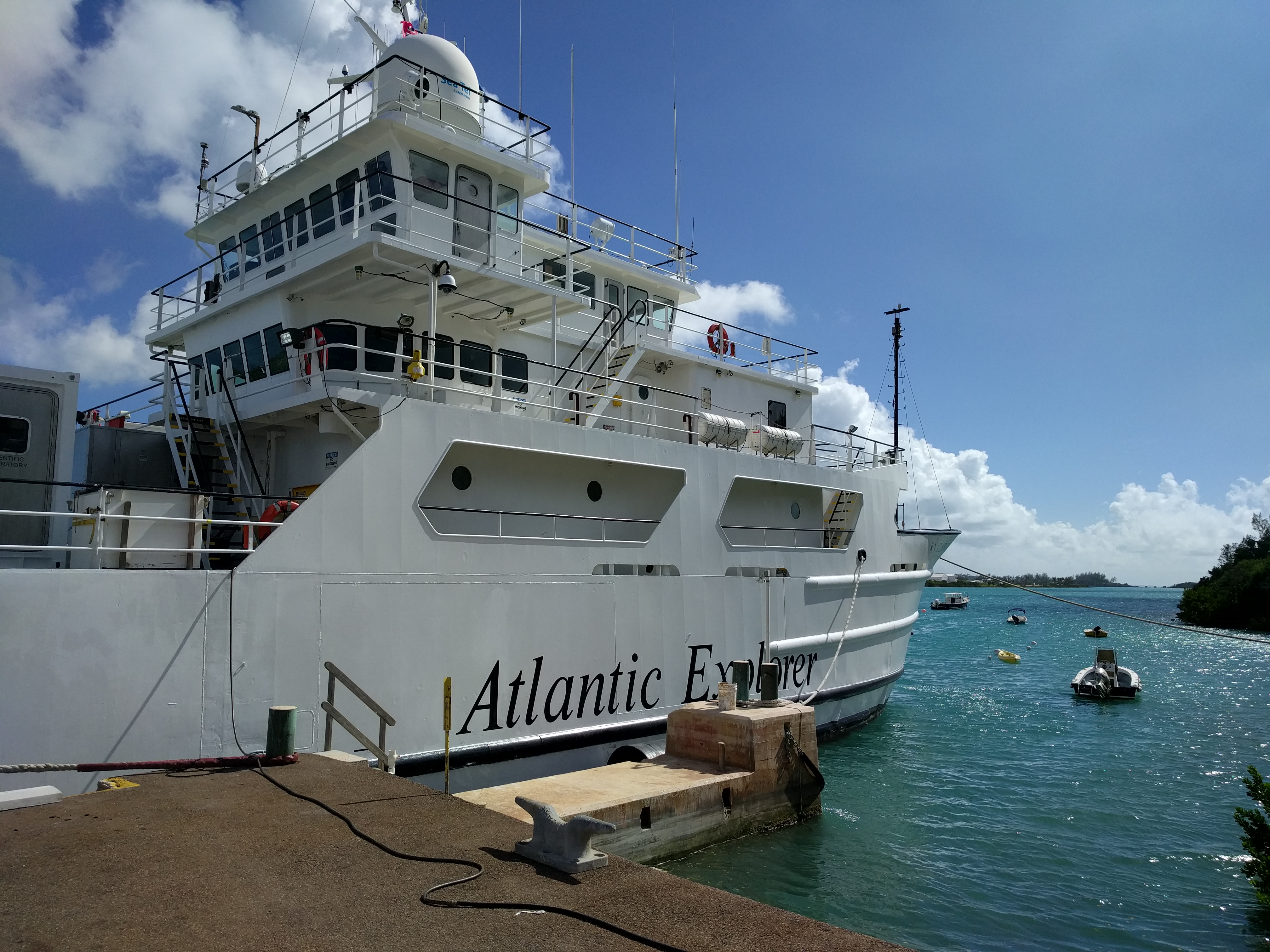The ship was the R/V Atlantic Explorer owned by the Bermuda Institute of Ocean Sciences (BIOS). It is 171′ ft long and carries 34 people.